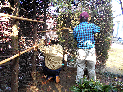今日は隣接する垣根の補強作業をしました。