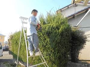 今回は背の高い垣根の剪定です。