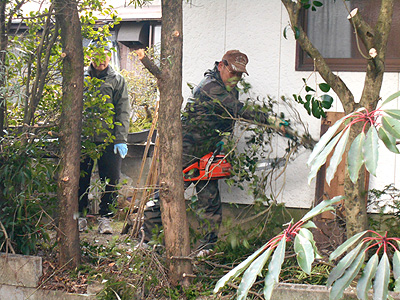 周りには雑木の垣根も多く、全てチェーンソーで切り倒し