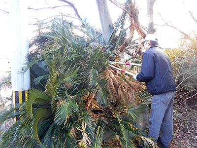 川副町でそてつの剪定と、周りのつつじの植え込み