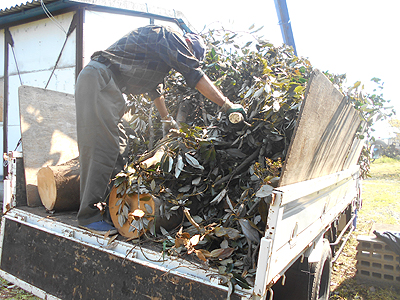 今日は庭木の枝打ちや剪定をした後の粗材処分です。
