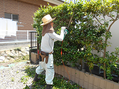 日時に合わせ垣根の剪定作業に来ています。