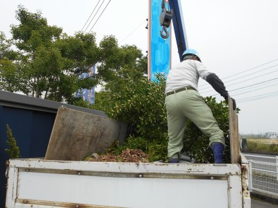 最後に周囲の清掃をし、粗材を積み込んだところです。