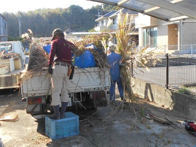 刈った後の粗材が2トントラック1台分相当となり
