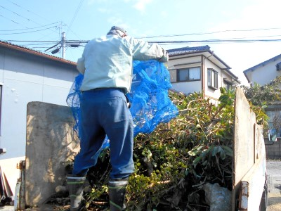 穏やかな陽気のなか、八戸町で庭木の枝打ち作業です。
