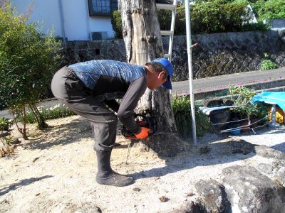 ご希望のため柿の木の伐採作業です。