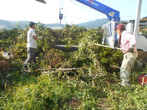 2016年8月11日(木) 荒地の雑木伐採で積込み作業です。 新しく制定された祝日の山の日です。暑さが続き、熱中症には気をつけての毎日です。 お盆前に片付け、スッキリ広くなりました。 雑木の除去、除草に草刈、お手入れなら […]