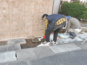 2017年10月24日(火) 大財町で庭周りに小石を敷き詰める作業です。砂利は重いので、一輪車を使って運びます。 地面に防草シートを張ってその上に敷石をしましたので雑草を防ぎつつ水はけも良くなることと思います。 防草シー […]