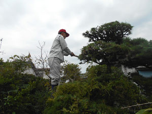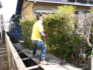 2016年10月24日(月) 水ケ江まで行き、垣根の剪定と庭木の枝打ちです。 川沿いのため足場をかけて粗材が川へ落ないように設営しました。 周りの状況にもきちんと対応したところです。 庭木の剪定・枝打ち、除草に草刈、庭の […]